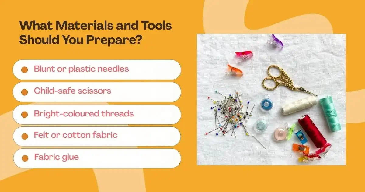 To stay organised, keep everything in a labelled sewing box or container. Having a tidy, designated sewing space makes crafting easier, safer, and more enjoyable for young learners.