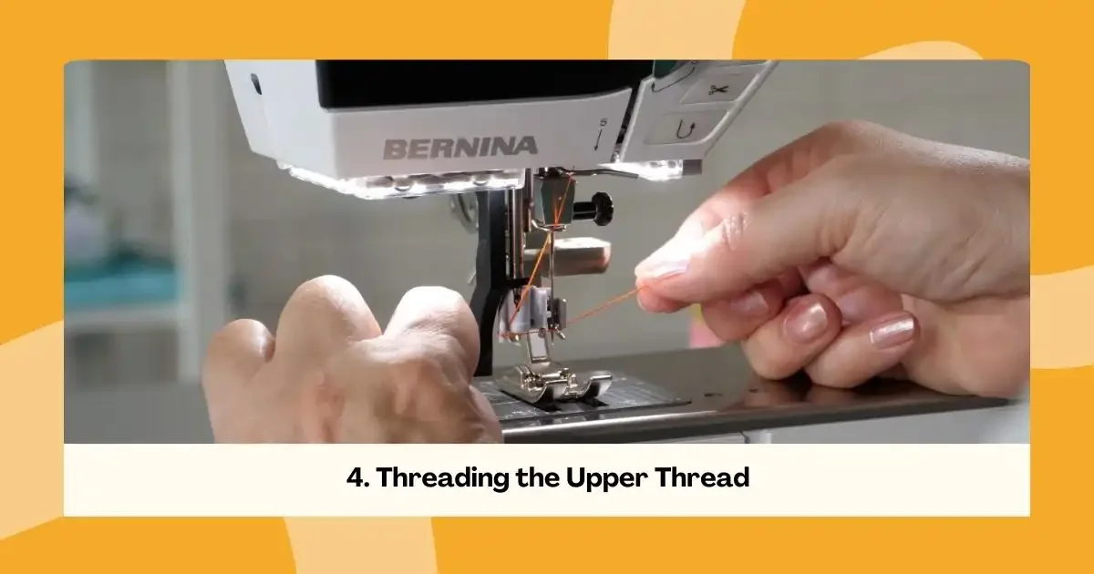 The upper thread is the visible thread on your stitches. Follow these steps for proper threading: